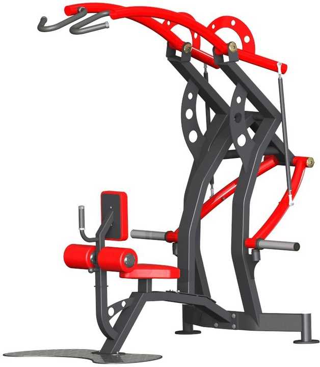 The exclusive design of this machine is specific for training all the main muscles of the back, thanks to the synergy activation of the large dorsal, large round, rhomboid and medium and lower trapezius, posterior deltoid; elbow flexor muscles such as brachial and brachioradial biceps are also activate during the movement. Thanks to the progressive pantograph system, that offers a physiological load curve, the user can perform the technical gesture effectively with an optimal tension throughout the range of movement. Independent levers allow to perform monolateral and bilateral training in total safety; The central fixed handle offers a stable support base to effectively carry out the monolateral exercise.